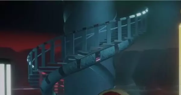 Can you spot the appearance of the spiral staircase above the laser tag arena that suggests multiple floors?